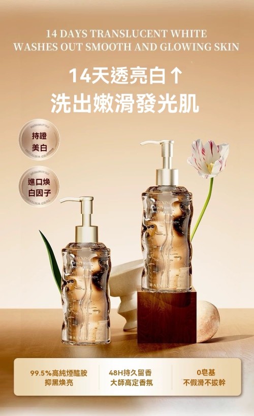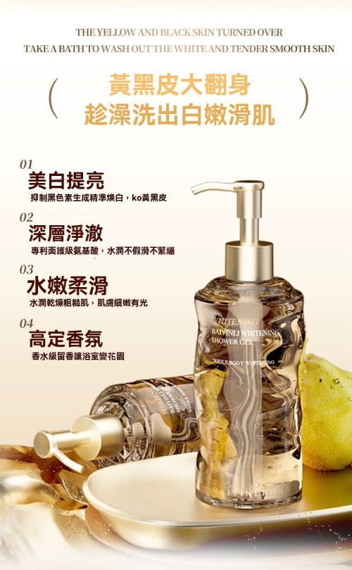 白引力美白沐浴露 48h長效留香 擊退黃黑皮 補水滋潤 煙酰胺煥亮清潔全身嫩白沐浴露